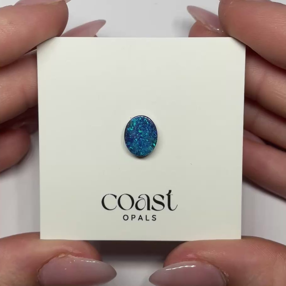 This 2.82ct boulder opal, cut to a 10x8mm oval, radiates electric blue tones highlighted with flashes of green. Its vibrant play of color shimmers like a night sky alive with energy. A striking gemstone, perfect for collectors or as the centerpiece in bold, sophisticated jewelry creations.