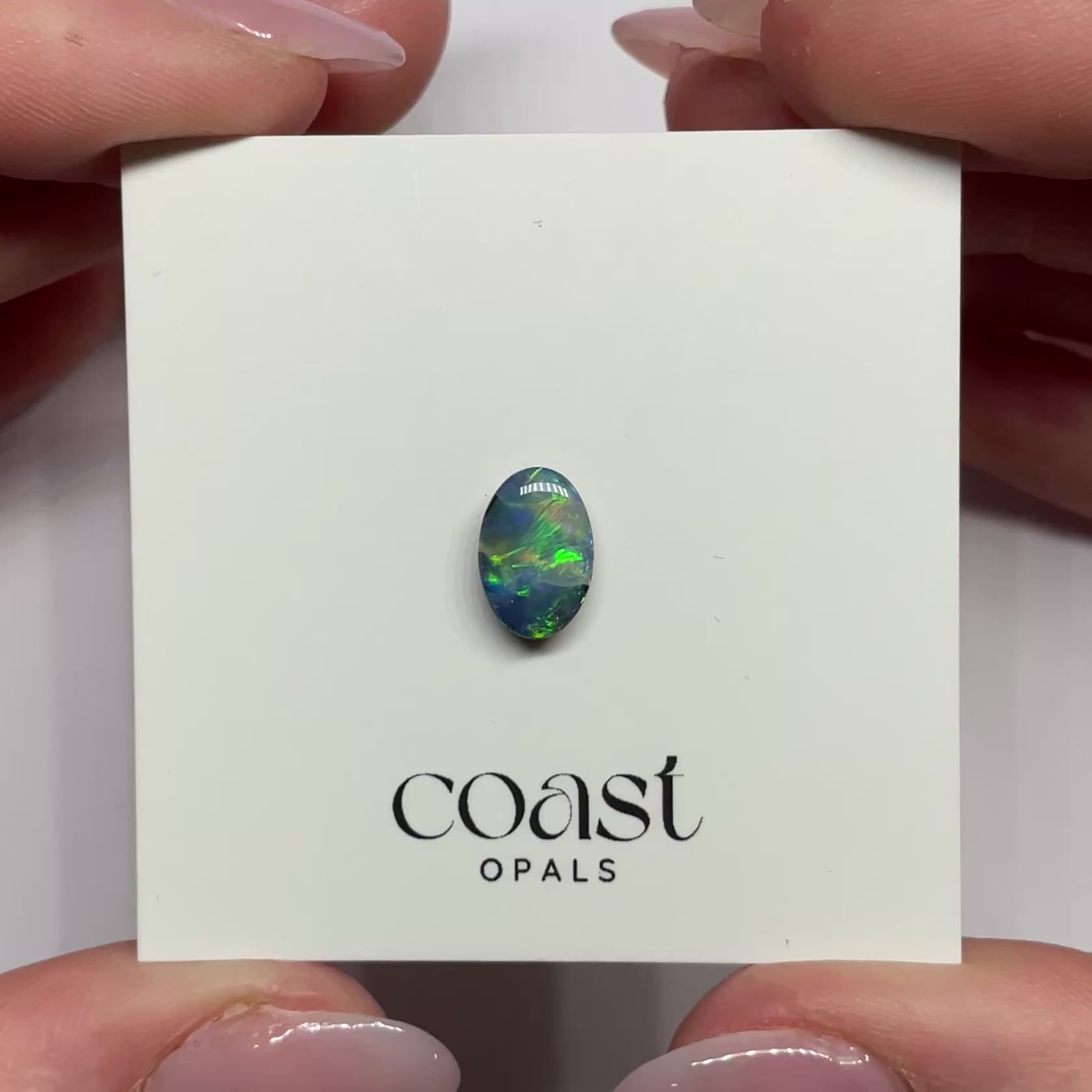 This 2.09ct oval boulder opal (10.4 x 7.13 mm) radiates a stunning spectrum of electric blue, vivid green, and flashes of teal with hints of gold. Its balanced oval cut enhances the natural brilliance, while the play-of-colour shifts beautifully with movement, making it a captivating centerpiece for fine jewellery.