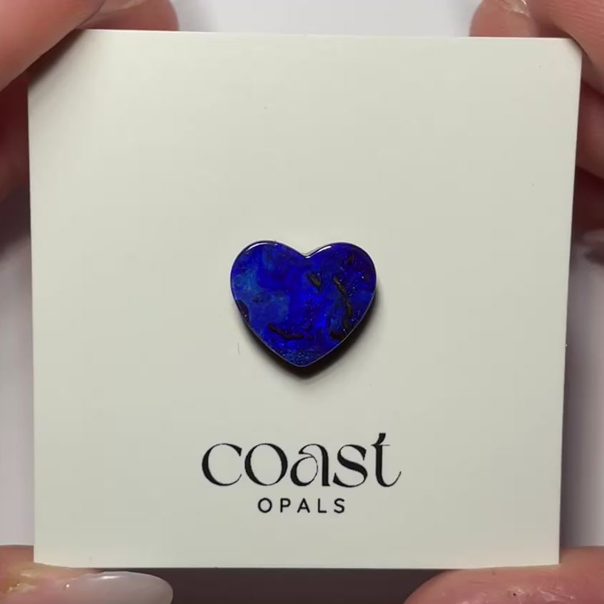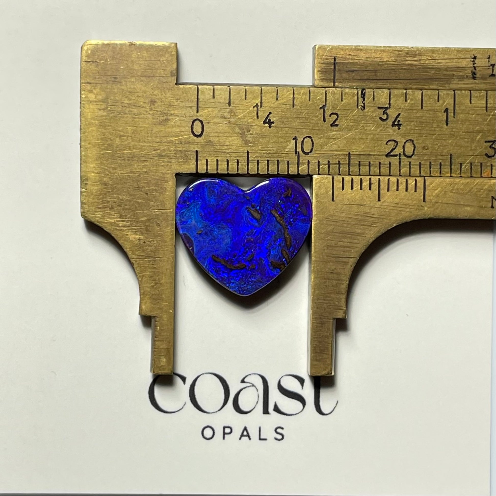 Vibrant heart-shaped opal showcasing a rich blue body tone with subtle swirling patterns. A unique and romantic gemstone, ideal for custom jewelry or a standout collector’s piece. 4.6ct
