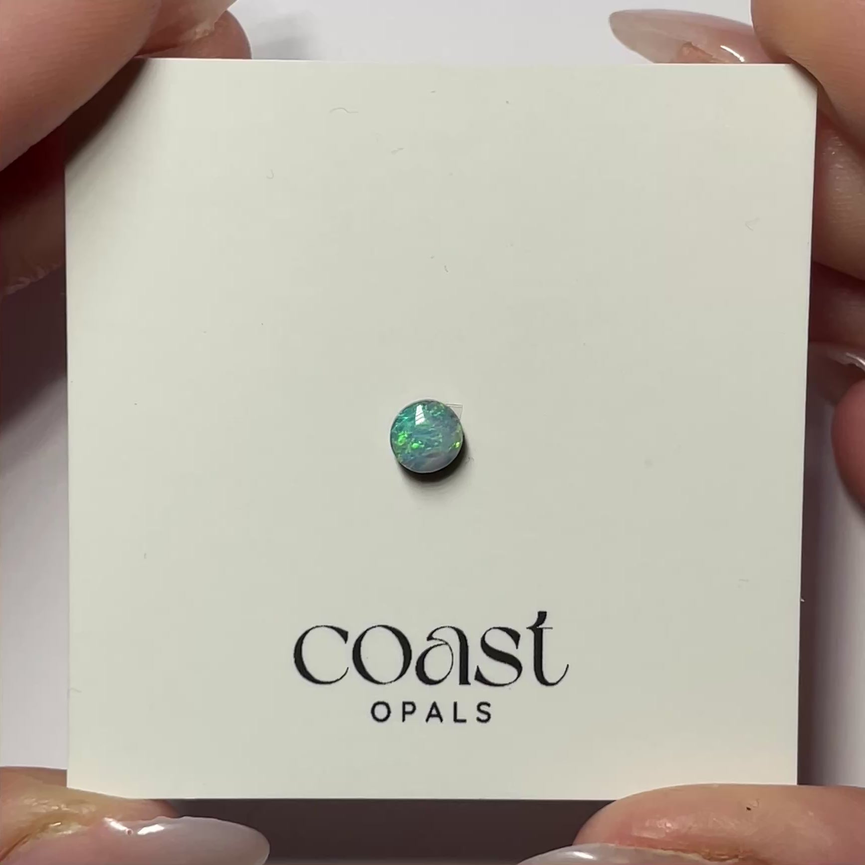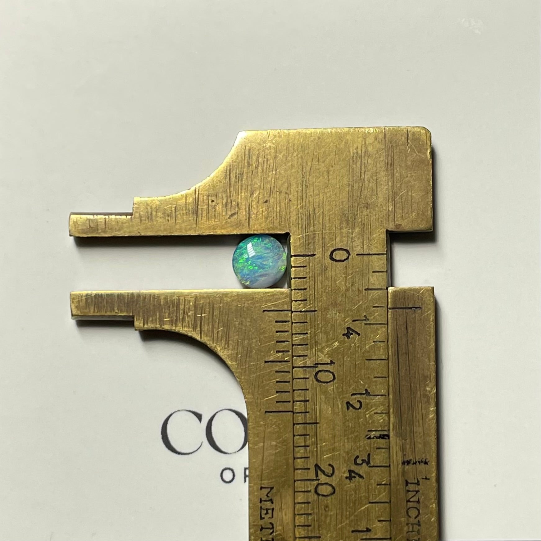 Charming round opal with soft blue body tone and vivid green flashes. Its classic cut and lively play of color make it perfect for rings, pendants, or fine jewelry accents.
