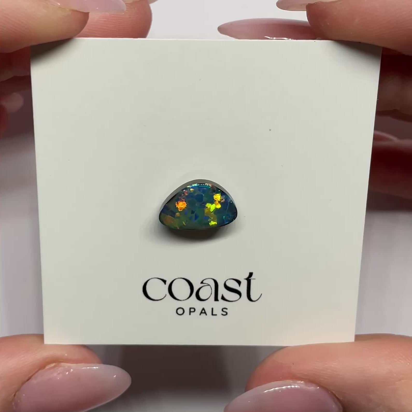 This vibrant 3.0ct Australian Boulder Opal shimmers with a fiery play of orange, yellow, green, and blue across its polished surface. Measuring 12.06 x 7.73mm, its freeform shape highlights the opal’s striking color pattern, making it an eye-catching gemstone perfect for a unique jewelry design or collector’s showcase.