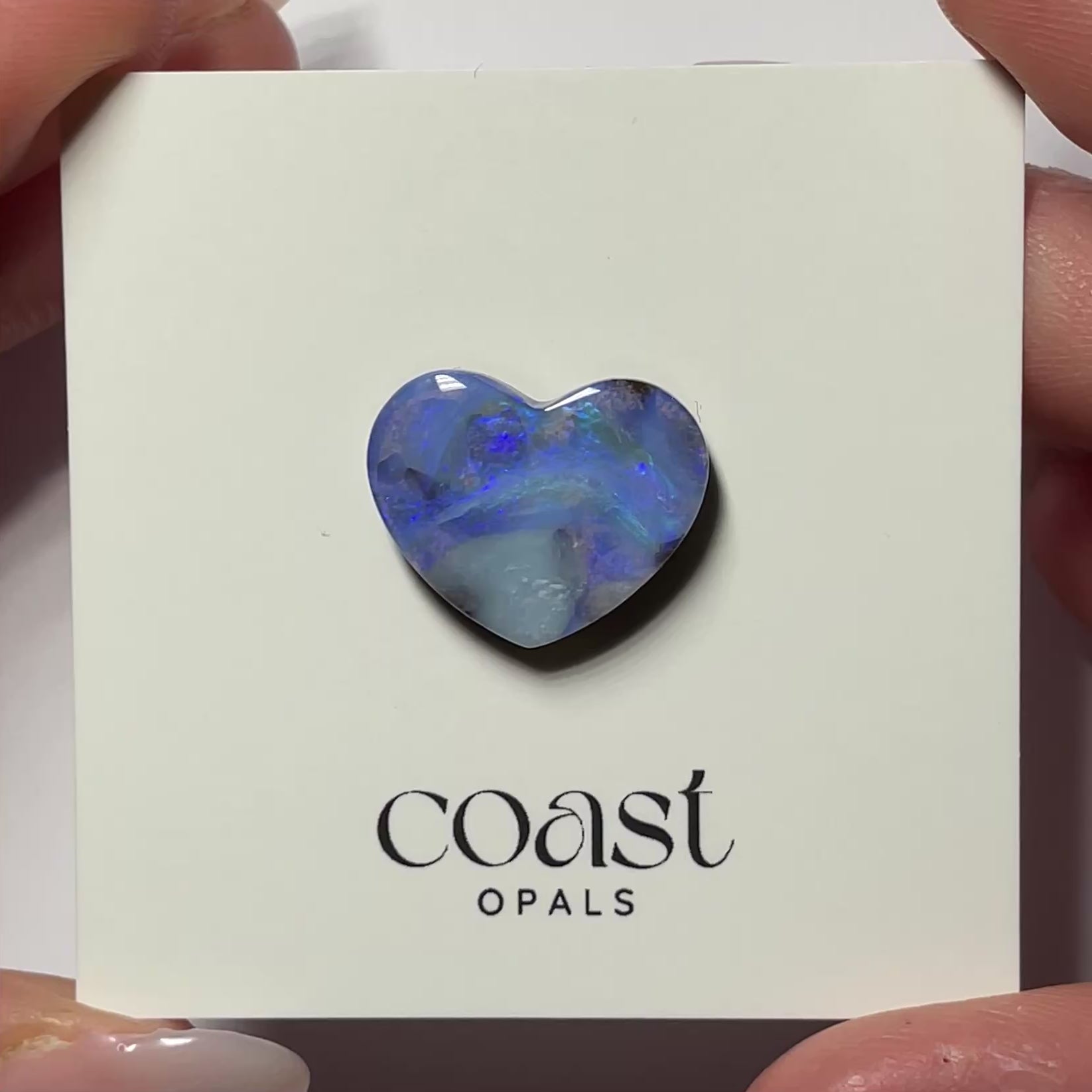 Mesmerizing heart-shaped opal with dreamy blue swirls and natural matrix accents. A stunning balance of vibrant color and organic texture, perfect for bespoke romantic jewelry designs.