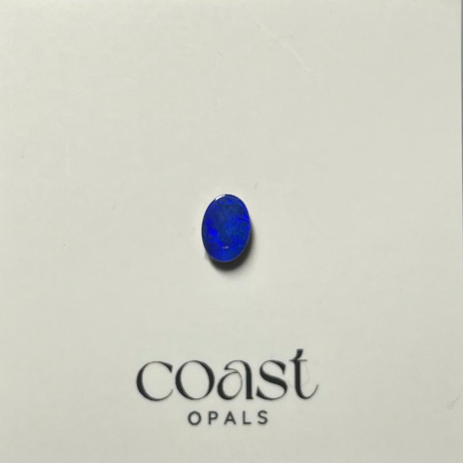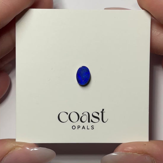Striking oval opal showcasing an intense, velvety blue body tone with subtle electric patterns. Its rich depth of color makes it perfect for bold rings or sleek pendant designs.