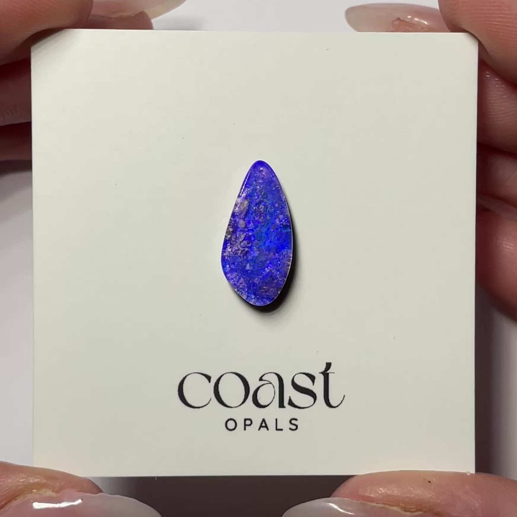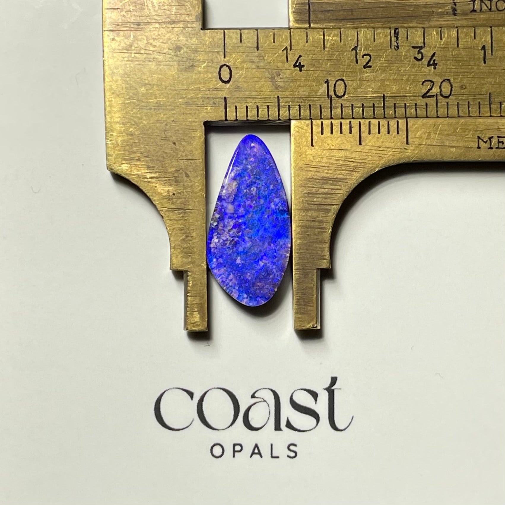 Elegant teardrop-shaped opal with a rich, deep blue body tone and subtle flashes of violet. Its smooth polish and striking color make it ideal for a sophisticated pendant design.