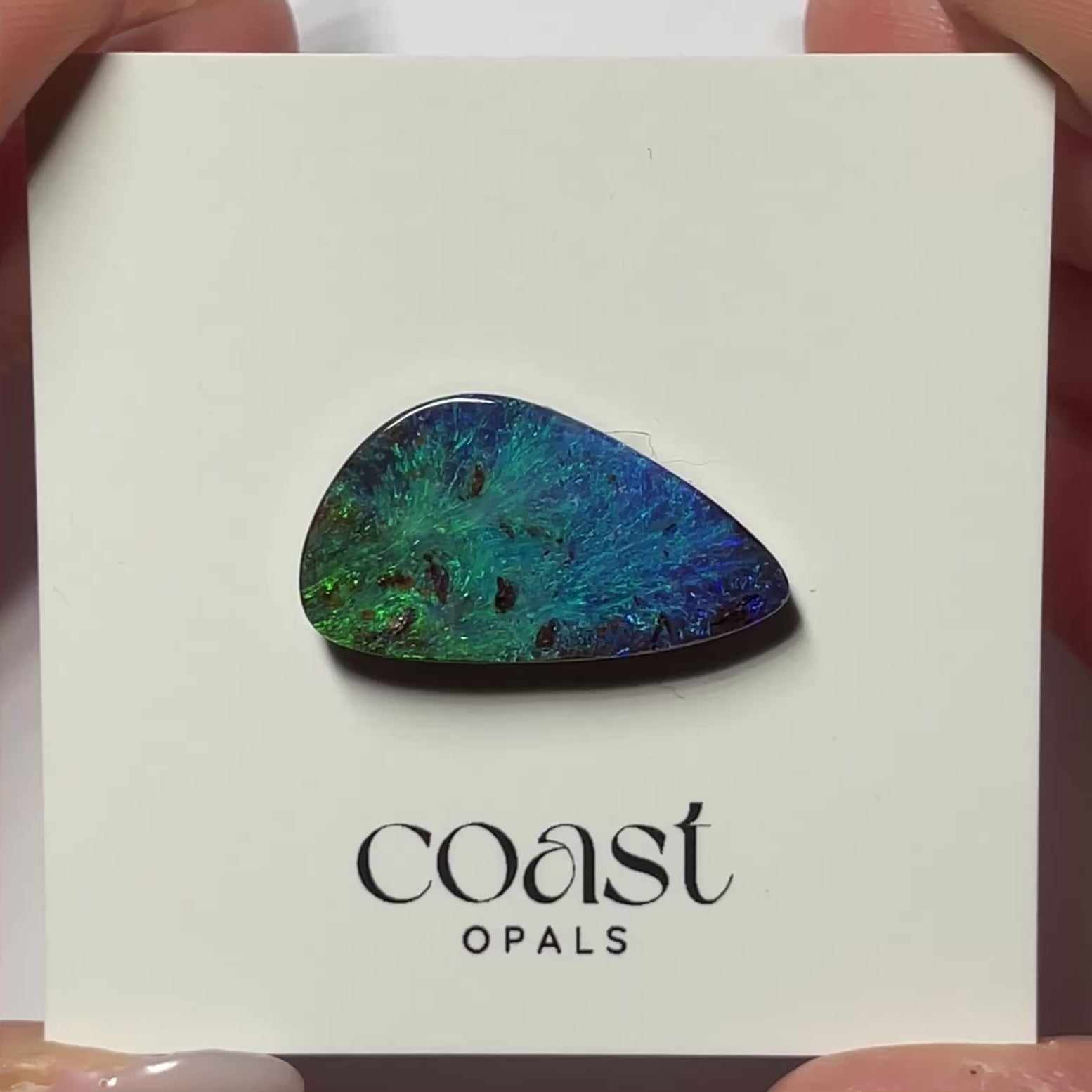 Beautiful freeform opal displaying swirling green and blue patterns with subtle matrix inclusions. Its flowing shape and vibrant color play make it perfect for a striking pendant design. 12.5ct