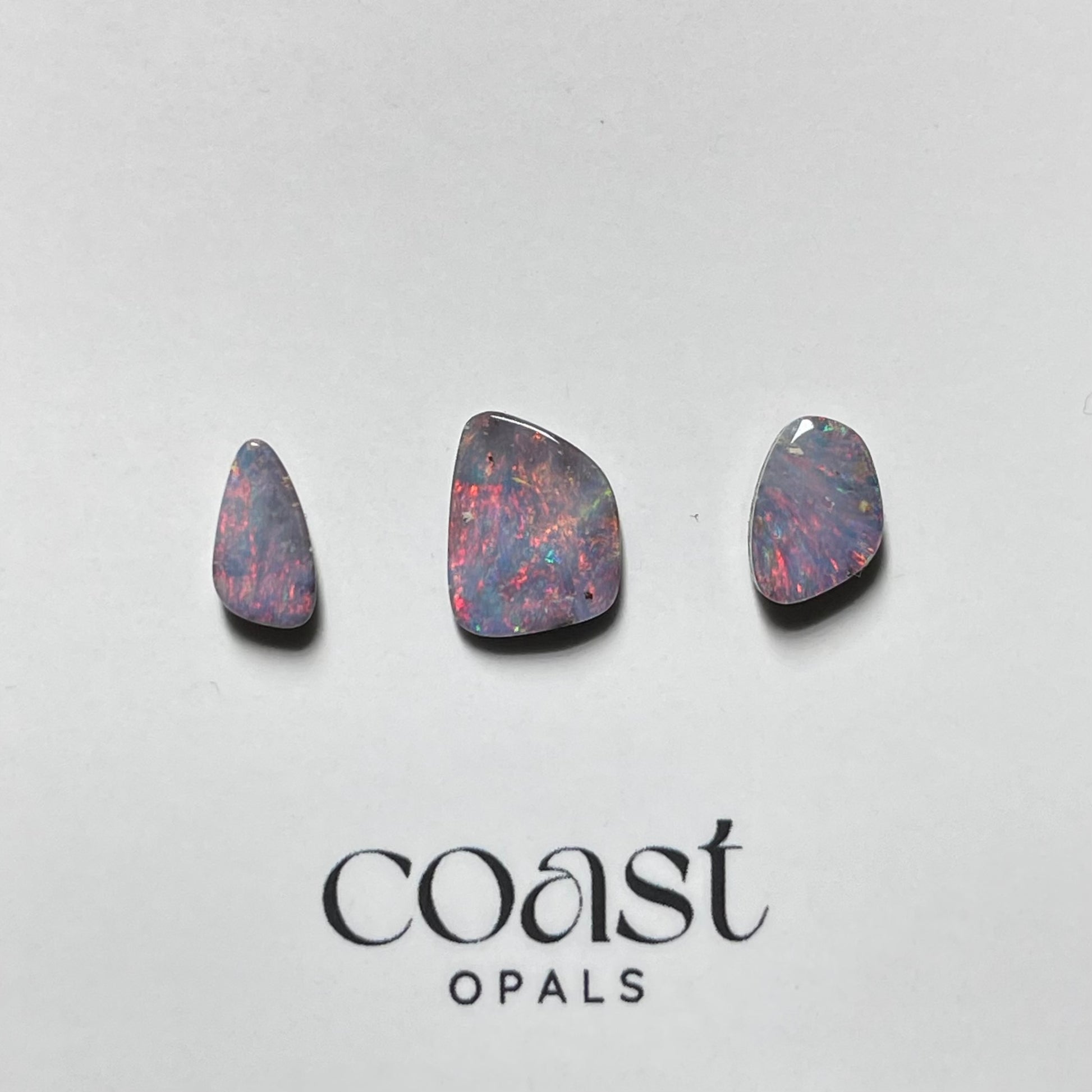 This soft, romantic pink-blue trio of stones have a unique quality to them. The versatile nature of these stones could leave them seen as pendants, studs or even matching rings.