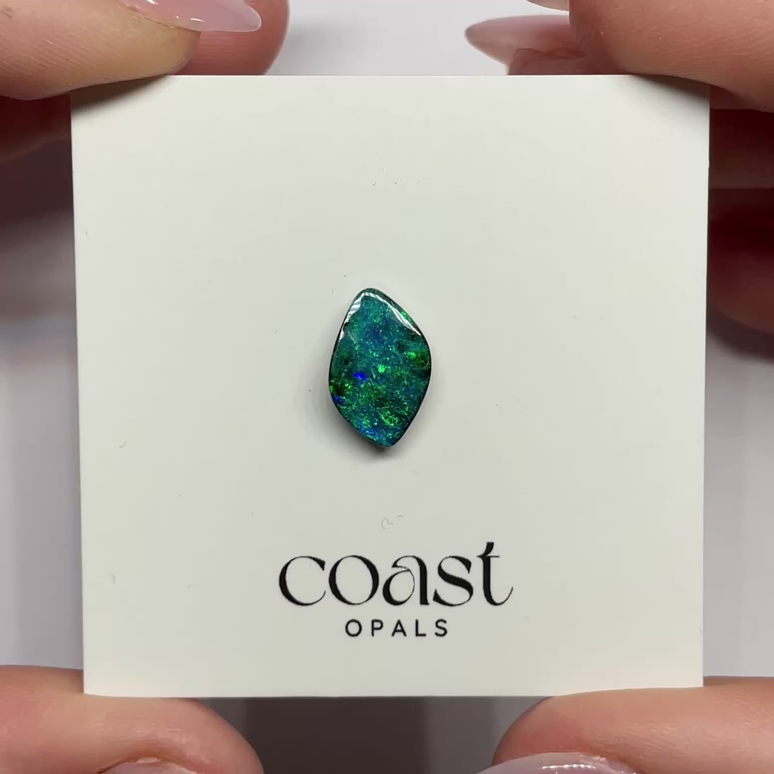 This 3.38ct Australian Boulder Opal, measuring 12.86 x 8.17mm, glows with vivid green and deep blue tones across its unique freeform shape. Its dynamic play of color shifts beautifully with the light, making it an eye-catching gem ideal for a statement ring, pendant, or a collector’s prized centerpiece.